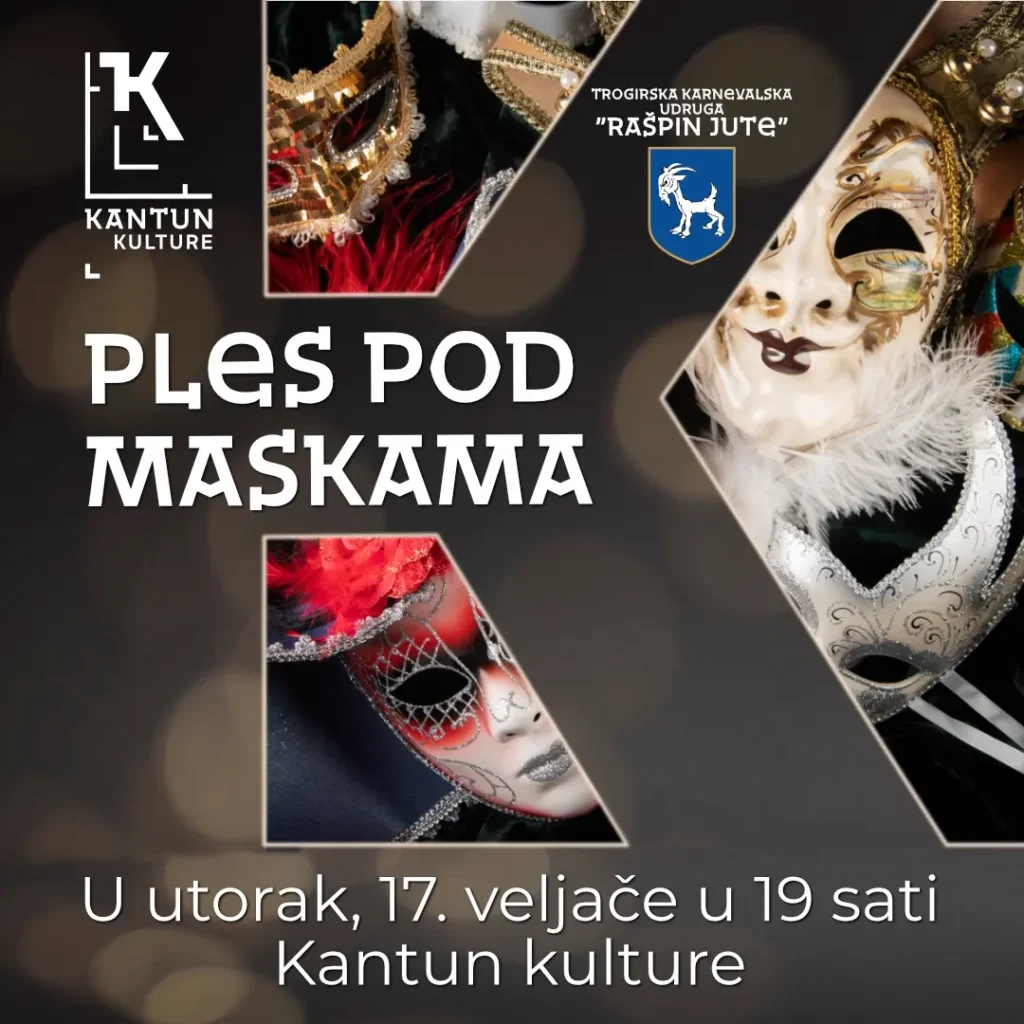 U organizaciji Kantuna kulture i Trogirske karnevalske udruge “Rašpin jute”, u utorak 17. veljače s početkom u 19 sati održat će se “Ples pod maskama”. Vesela karnevalska večer održat će se u prostoru Kantuna kulture, a organizatori najavljuju bogat i zabavan program za sve generacije.