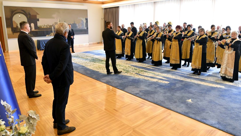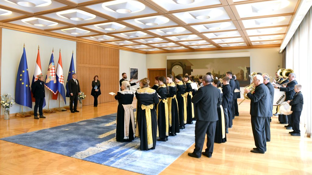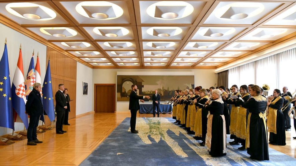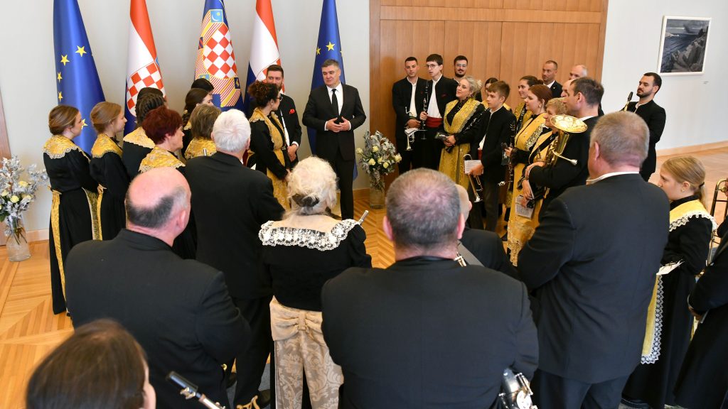 Predsjednik Republike Zoran Milanović primio je danas članove Narodne glazbe Trogir, amaterskog puhačkog orkestra koji ove godine obilježava 200 godina neprekidnog djelovanja.