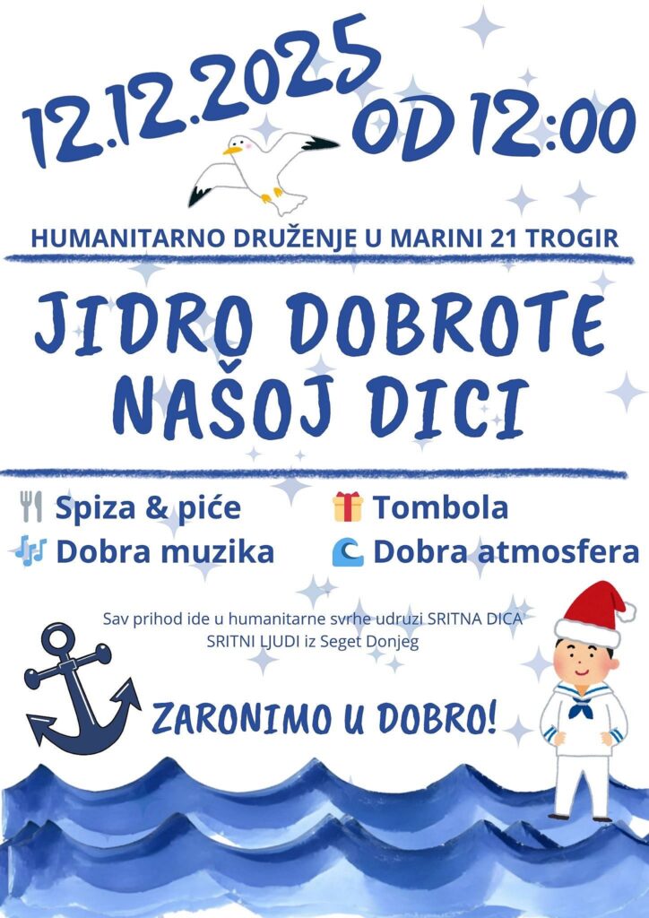 U predblagdanskom ozračju bogatom adventskim događanjima, posebno se ističe inicijativa koja spaja zajedništvo, radost i humanost – “Jidro dobrote našoj dici“. Riječ je o humanitarnom okupljanju koje će se održati 12. prosinca 2025. godine u 12 sati, u prostoru Marina 21 Trogir.
